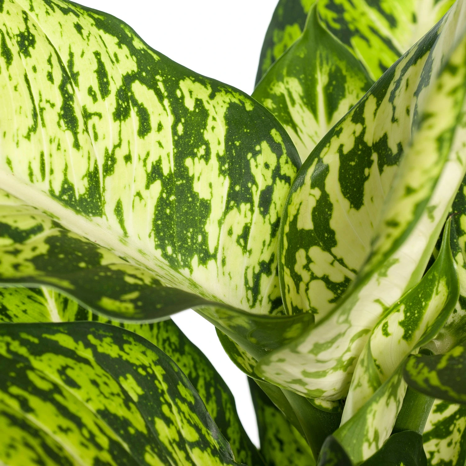 Hij heeft prachtige bladeren en is daarom bij ons erg geliefd als kamerplant. Pas wel op voor het sap van deze plant, dat is namelijk zeer giftig. Draag bij het verpotten van een Dieffenbachia dan ook altijd handschoenen en pas op met deze plant bij kinderen en huisdieren. De Dieffenbachia ‘Sublime’ heeft een bont gekleurd blad in verschillende groentinten.