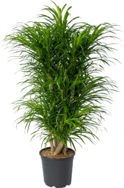 De Dracaena’s zijn populaire kamerplanten die erg makkelijk in het onderhoud zijn. Ze kunnen daarnaast enorm oud worden waardoor je lang plezier hebt van deze leuke bladplant. De Dracaena staat graag op een lichte standplaats, maar verdraagt ook wat meer schaduw. Dit specifieke soort heeft smal maar kort blad in het fris tot donker groen.