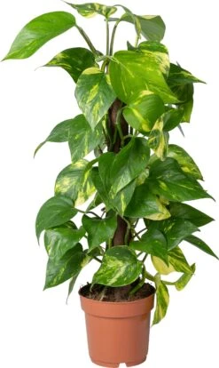 Een klimplant, of zoals hij bij ons beter bekend is in Nederland, een mooie hangplant. De Epipremnum is familie van de aronskelk-familie. Een snelle groeier met geel bonte bladeren. Wordt de handplant je te lang, dan kun je hem korter maken door hem te snoeien net onder (hangend) of boven (klimmend) het blad. Dan loopt hij weer goed uit.