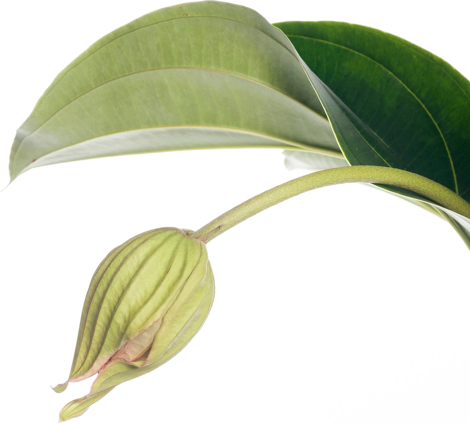 Het is een opvallende verschijning. De nerfstructuur is duidelijk zichtbaar en regelmatig, maar nog meer opvallend is de bloeiwijze. De bloemtrossen worden zichtbaar aan hangende stelen omrand met roze schutbladeren. Hij moet vaak even wennen aan zijn nieuwe omgeving. Houdt er rekening mee dat hij blad kan laten vallen of dat bladeren soms zelfs deels zwart kunnen worden. Geen nood, met de juiste zorg en wat geduld komt dit helemaal goed.