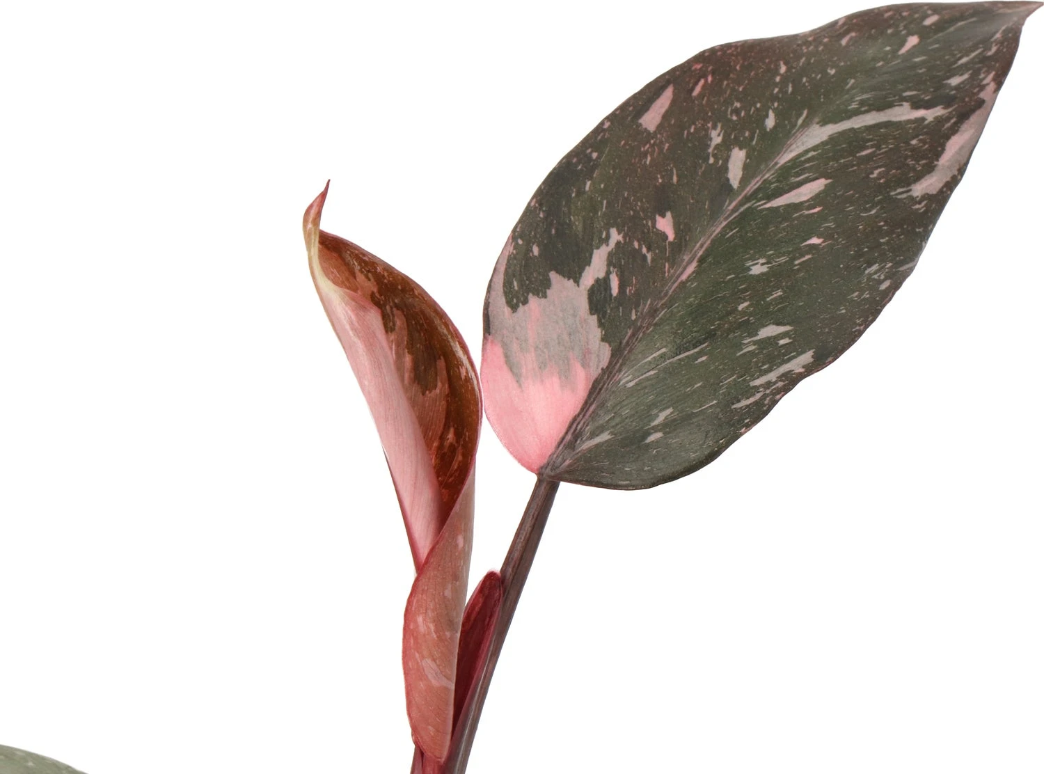 De familie van de Philodendron breidt maar uit en uit. Er zijn tegenwoordig vele soorten en varianten op de markt. De plant is familie van de aronskelkachtigen. De plant komt niet snel in bloei maar dan zie je pas de vergelijking met andere soorten binnen deze grote familie. Het sap van deze plant is giftig voor mens en dieren. Zorg ervoor dat je handschoenen aan doet als je met deze plant aan de slag gaat en zorg ervoor dat hij buiten bereik staat van huisdieren. Deze roze prinses is een chique verschijning tussen de kamerplanten met de helderroze met groene bladeren. De roze verkleuring is niet altijd op elk blad te zien maar dat maakt hem juist zo bijzonder.