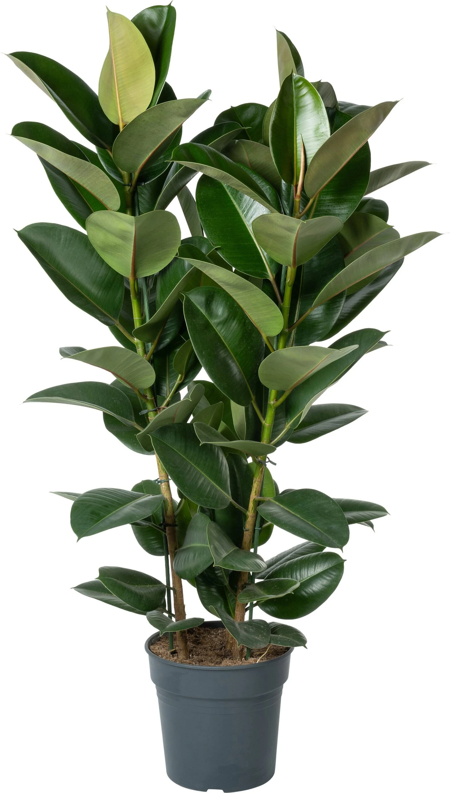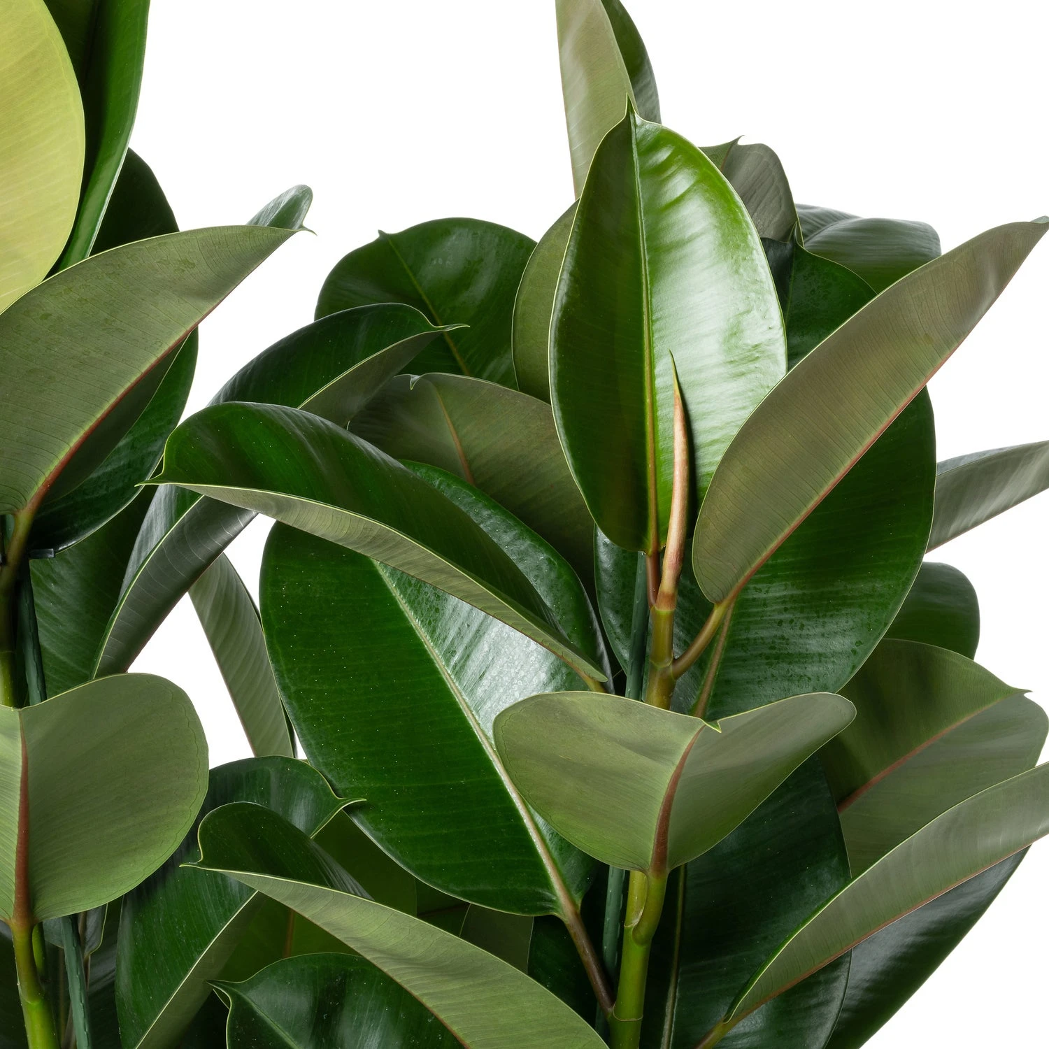 In de natuur kan deze boom enorm worden, wel 30 tot 40 meter. Het sap van deze Ficus is irriterend bij aanraking, en zelfs giftig bij inname. Zet deze plant dan ook op een plek waar kinderen en/of huisdieren er niet bij kunnen. Naast giftige eigenschappen heeft deze Ficus ook een paar goede eigenschappen, hij helpt namelijk ook om de luchts binnenshuis te zuiveren. De ‘Robusta’ heeft groen groot blad. De Ficus elastica is de Rubberboom. Deze naam heeft hij vanwege het sap (latex) wat een belangrijke bron was voor rubber.